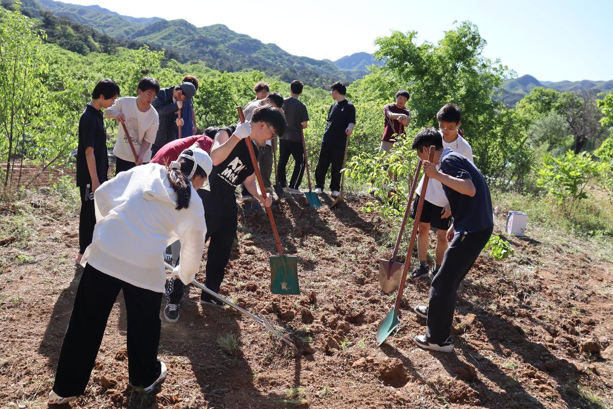 共上一堂勞育實踐課。學院師生一行來到昌平區延壽鎮黑山寨村,共同開展勞動教育實踐活動。葉海木、黑山寨村委會代表陳立芳共同為勞育實踐基地揭牌,并宣布基地勞育活動啟動。在基地山坡的荒地上,師生戴手套拔除雜草、扛鐵鍬翻地松土,開辟了一塊基地勞育實踐田。未來,學院師生會在此處開展勞動教育、鄉村振興、社會實踐等活動,為學院學生提供實踐渠道。主題聯學后,學院師生拍攝了一部青春微電影。參加活動的師生以中石大經典地標為背景,用高燃轉場的方式演繹中國青年百年來的奮斗歷程。