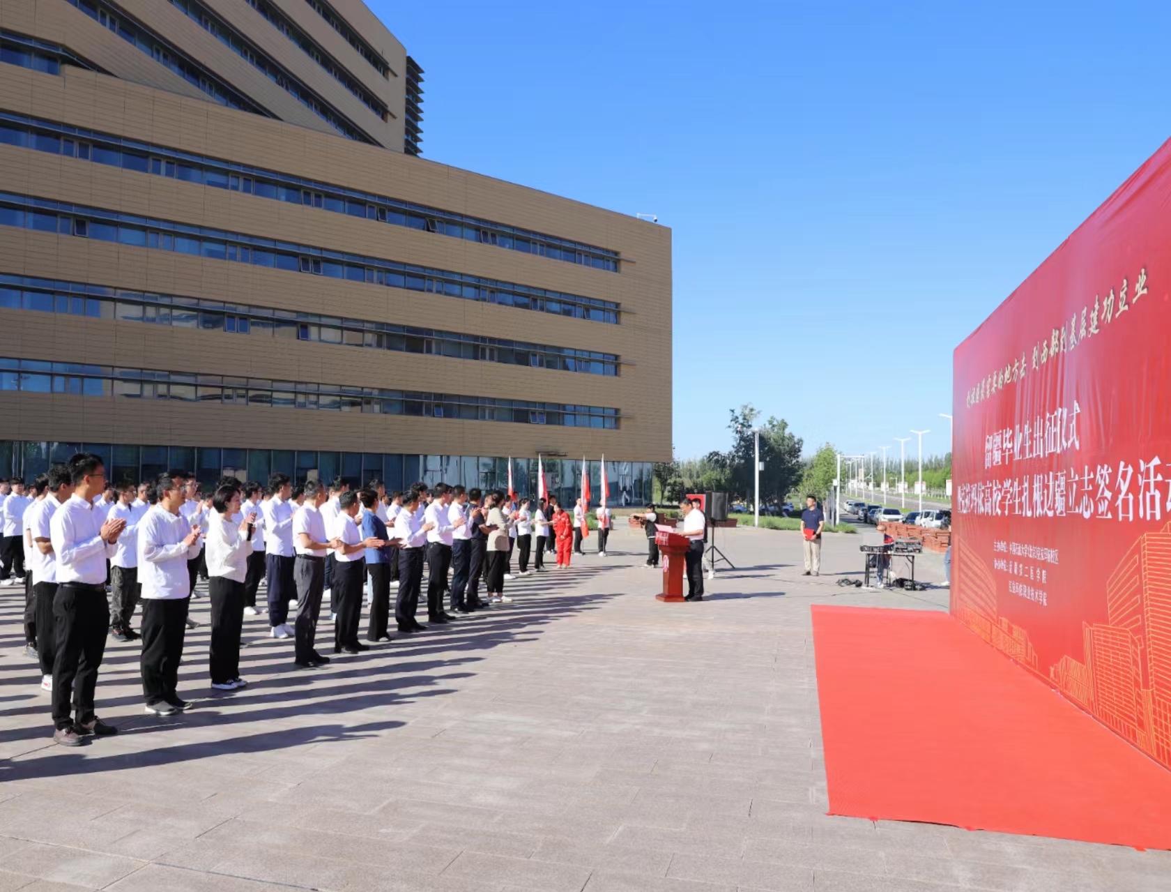 中石大校區(qū)舉辦“到祖國最需要的地方去”留疆畢業(yè)生出征儀式暨克拉瑪依高校學(xué)生扎根邊疆立志簽名活動