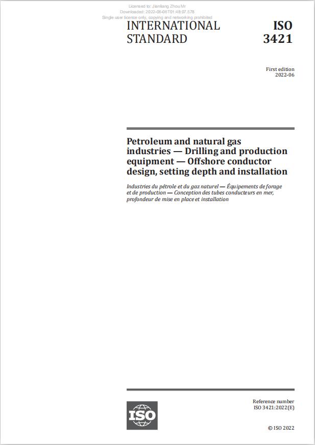 隔水導管是海洋鉆井的“咽喉要道”,是所有海洋油氣井建井的必備結構物。ISO 3421旨在為全球海洋石油工業提供淺水和深水油氣領域有關隔水導管規格、下入深度與安裝作業的設計方法,以解決隔水導管入泥深度精確預測、穩定性校核與施工控制技術難題。該國際標準推薦的設計方法和技術已在渤海、東海、南海西部和南海東部百余個油氣田現場應用與驗證,取得了顯著的經濟社會效益,并推廣應用至巴西、西非、墨西哥灣的海外區塊。