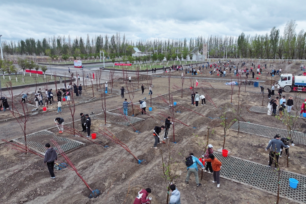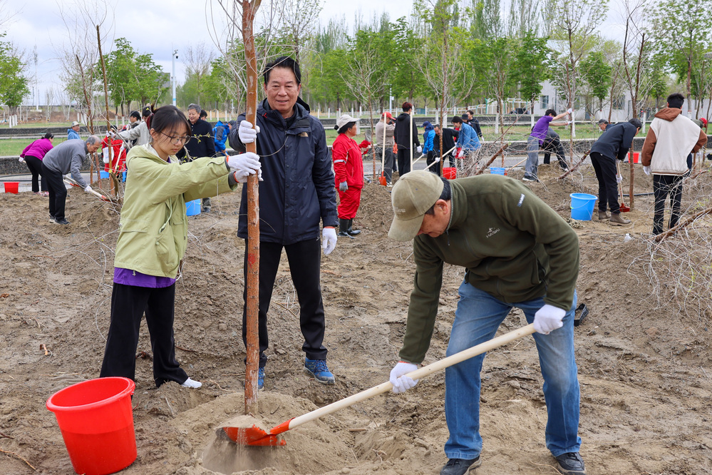 4月20日上午,克拉瑪依校區在校園內組織開展“十載育人綻芳華,植夢油園啟新程”校友林和援建林植樹活動。此次校友林和援建林規劃面積1.8畝,其中校友林種植紅葉海棠、紫葉稠李、蘋果樹、山楂樹、銀新楊等樹苗600余株,援建林種植胡楊樹苗400余株,校區領導、教師代表、校友代表、學生代表等300余人參加活動