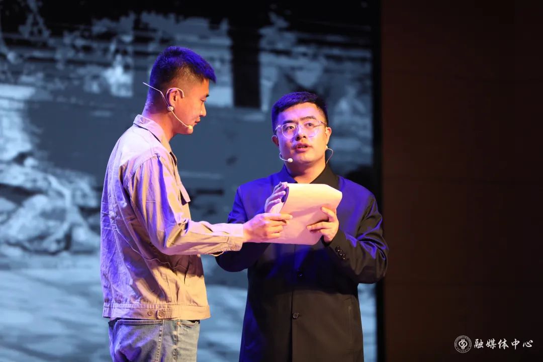 激昂的管弦樂合奏之后,來自各學院的青年師生以故事講述、情景再現、音樂舞蹈短劇等形式,分享了青春奮斗的故事。