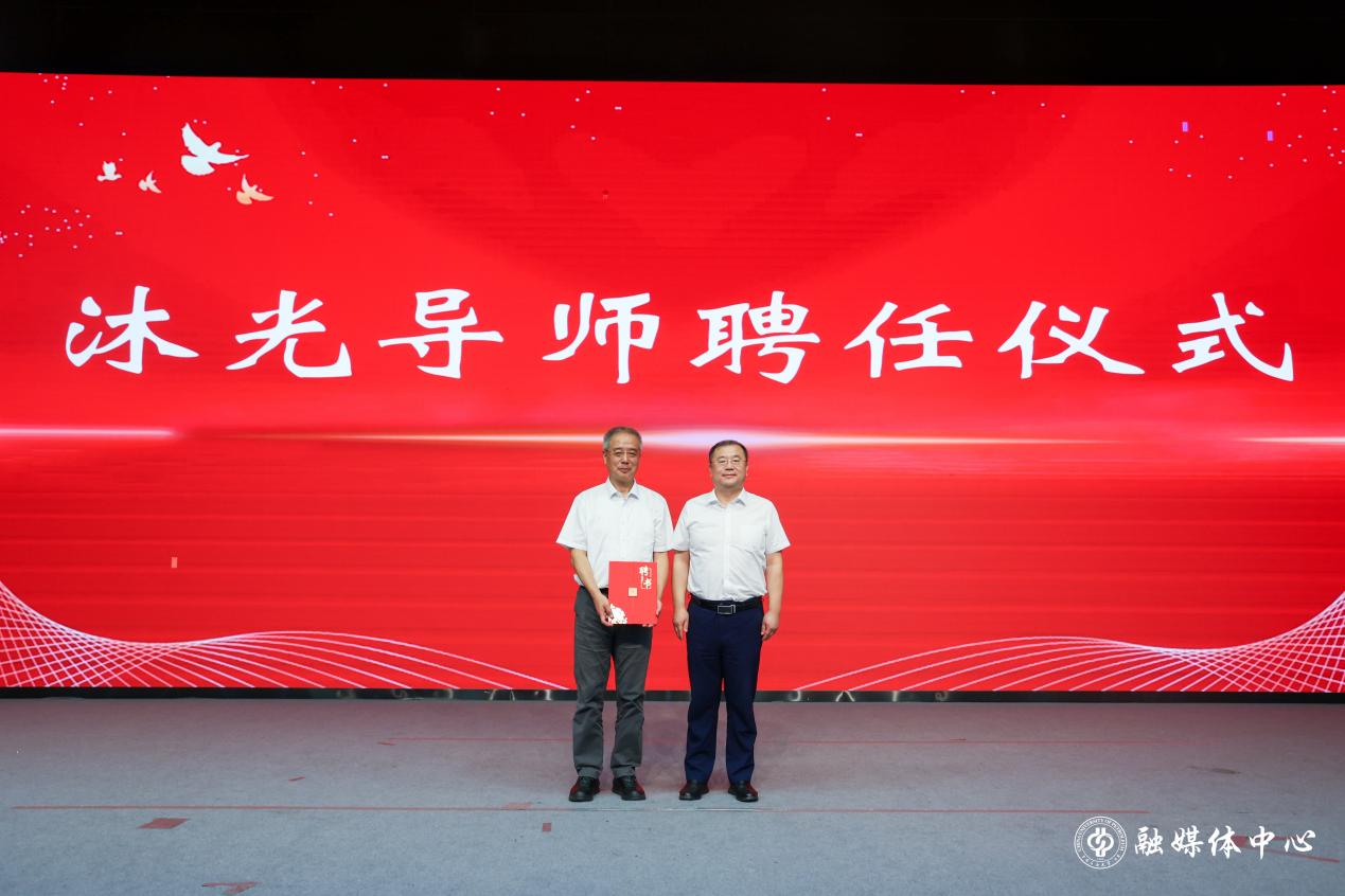 黃磊為許進(jìn)頒發(fā)學(xué)校沐光導(dǎo)師聘書。研究生新生代表為許進(jìn)獻(xiàn)上鮮花,表達(dá)感謝和敬意。