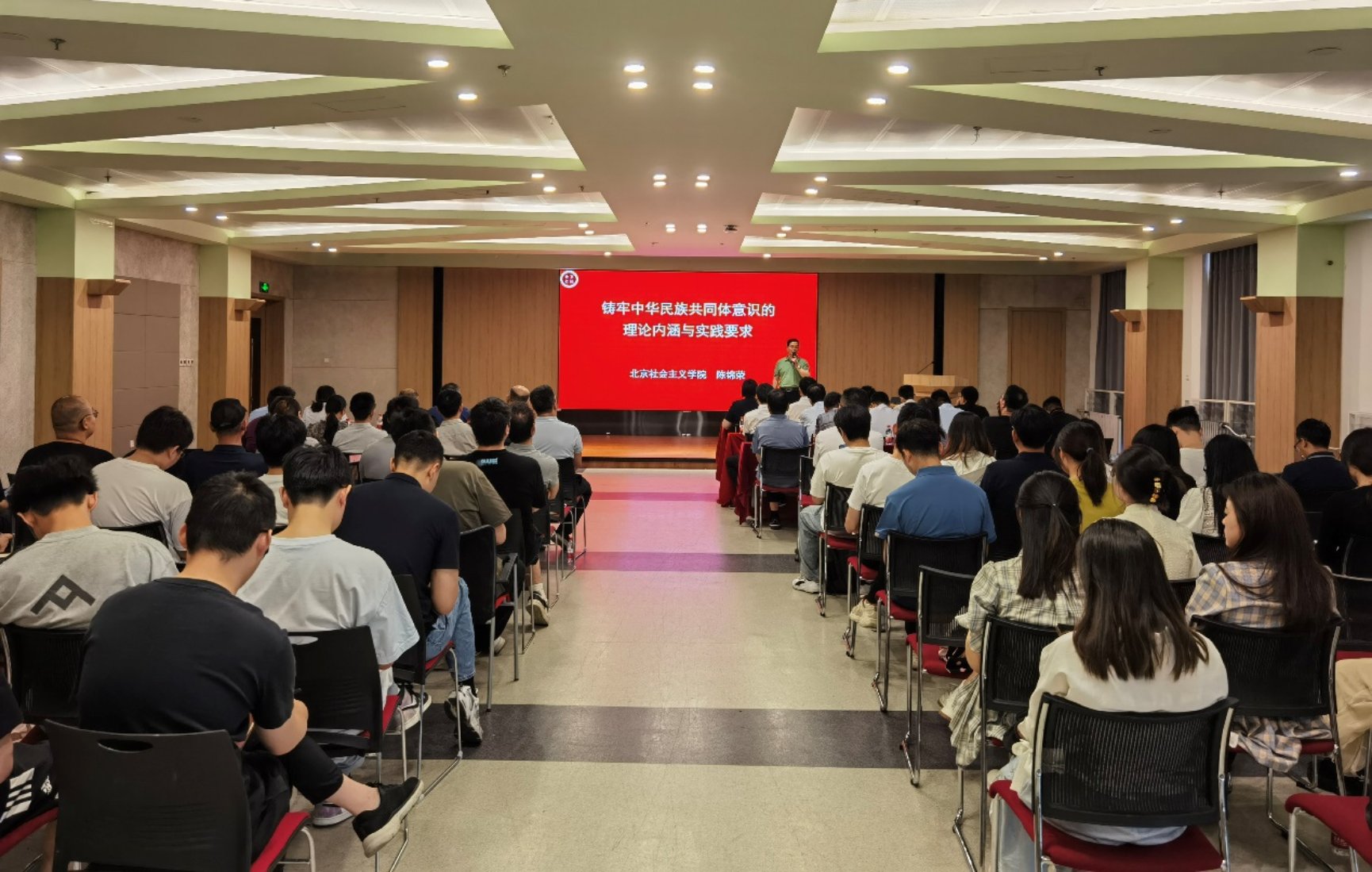 北京社會主義學院馬克思主義理論教研部副主任陳錦榮為大家作題為“鑄牢中華民族共同體意識的理論內涵與實踐要求”的專題報告。陳錦榮從提出背景、豐富內涵等方面對鑄牢中華民族共同體意識這一重要論述進行了深刻解讀,并立足高校實際、運用鮮活案例,系統闡述了“如何鑄牢中華民族共同體意識”等三個在實踐中須重點把握的問題。
