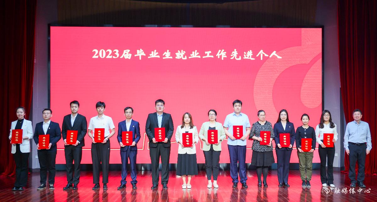 王同奇向獲得就業工作表彰的集體和個人表示祝賀,對學校2023屆畢業生就業工作取得的成績給予充分肯定,并對全面加強2024屆畢業生就業工作提出要求。他指出,一是要進一步提高政治站位,準確把握當前就業工作形勢,深刻認識推動高校畢業生高質量充分就業的重要性,研判變化、落實要求、扎實推進畢業生就業工作。二是要堅持立德樹人根本任務,將就業工作放在突出位置。各學院要嚴格落實就業工作“一把手”工程,持續優化契合學院學科專業特色的促就業穩就業工作政策辦法,高標準推進訪企拓崗專項行動。三是要聚焦行業變革和社會發展需求,有效實現招生培養就業聯動。持續在培養模式和教育教學改革中雙向發力,不斷提高人才培養質量。相關部門要強化協同育人,提升學生專業認同感和行業歸屬感。四是要激發學生內生動力,強化沐光成長計劃引領作用,在專業課教學和實習實踐中加強就業教育,幫助學生增強責任感與使命感,將個人理想融入國家發展需求。要落細落實畢業生就業幫扶工作,注重科學精準指導,量身定制幫扶計劃,確保困難群體畢業生充分就業。