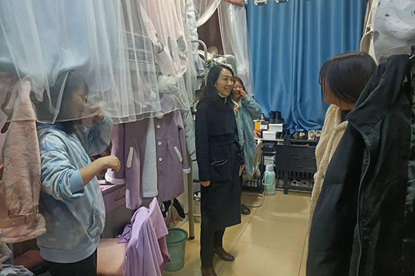 24日晚,王茹及學(xué)院本科生班主任、輔導(dǎo)員等前往學(xué)生潤杰公寓,深入學(xué)生宿舍,與各班班長及學(xué)生交談,了解學(xué)生的課余生活和學(xué)習(xí)情況,增進(jìn)學(xué)生和班主任之間的溝通交流。