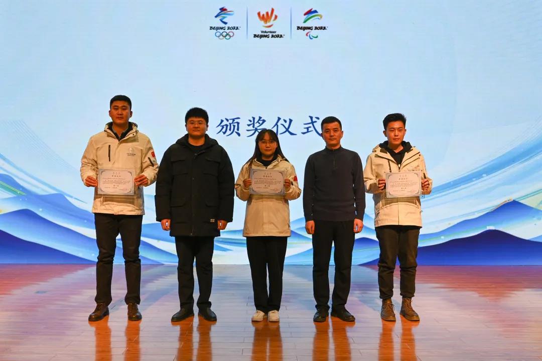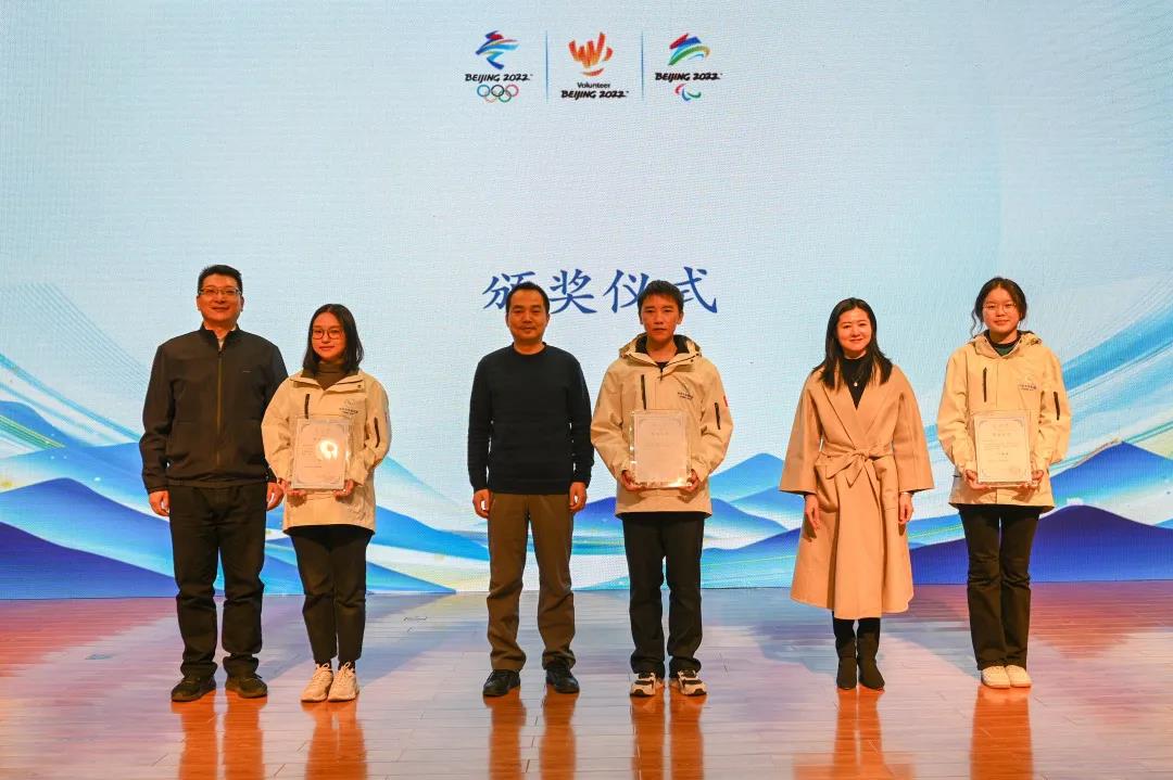 張吉昌、劉漪、張濤為冬奧志愿知識大PK第一名獲獎學生頒獎
