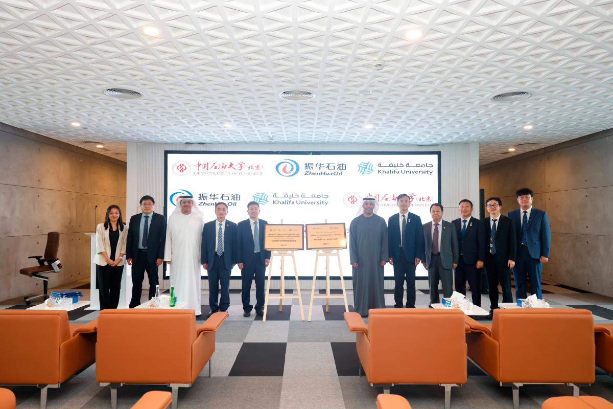 金衍一行赴哈利法大學開展專項交流,攜手該校與振華石油公司舉行石油創新與可持續發展聯合實驗室揭牌儀式,并簽署三方聯合聲明,宣布成立中阿卓越工程師學院,駐阿聯酋大使張益明出席儀式并見證揭牌。儀式上,金衍指出,中石大作為新中國第一所石油高等院校,始終服務中國能源戰略與油氣行業海外發展。此次揭牌讓校企合作再上新臺階,學校將以務實行動推動合作走深走實,愿與振華石油公司、哈利法大學在海外科研共建、人才共育等方面深化合作,為中阿能源合作筑牢人才與技術支撐。哈利法大學校長易卜拉欣?哈吉里(Ebrahim Al-Hajri)和振華石油公司總經理盧立澤表示將發揮各自優勢,深化三方產學研融合,加快建設科研攻關與人才培養機制,共同打造開放共贏的國際合作平臺,為三方合作注入動力。儀式后,金衍一行就學生聯合培養等方面與哈利法大學舉行深度會談,并簽署學術合作協議。