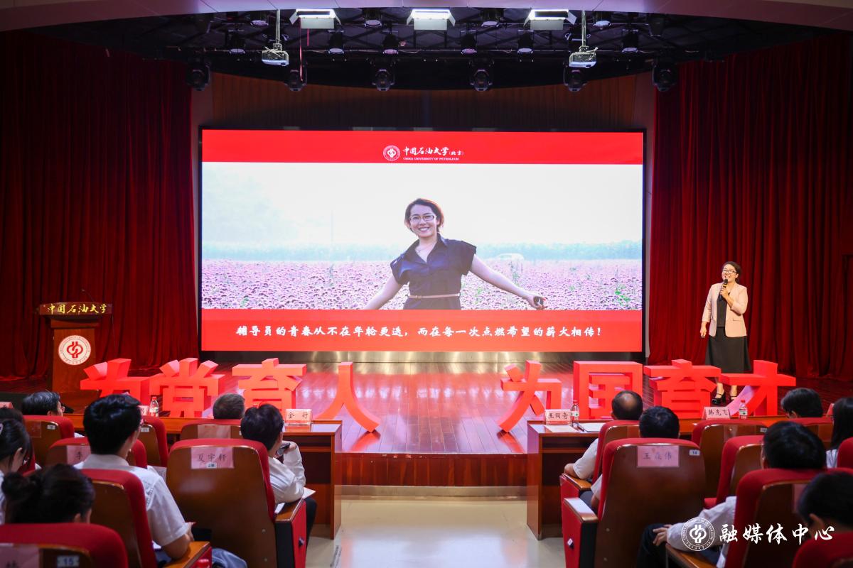 來自校本部和克拉瑪依校區(qū)的七位教師及教師團(tuán)隊(duì),立足專業(yè)深耕領(lǐng)域,分享了自身站好講臺守初心、篤志治學(xué)研真知、春風(fēng)化雨潤心靈的教育故事,充分展現(xiàn)中石大教師隊(duì)伍傳承弘揚(yáng)教育家精神、全身心投入教育教學(xué)、關(guān)心支持學(xué)生成長成才的師者風(fēng)范。