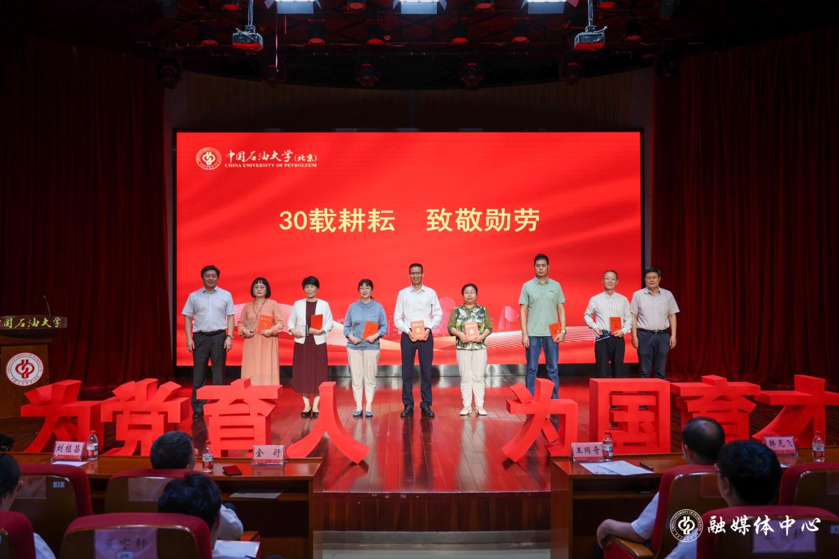 9月10日下午,中國石油大學(xué)(北京)在教工活動中心報(bào)告廳舉辦第三屆“為黨育人 為國育才”育人故事講述活動暨2025年度教職工榮休典禮,共同慶祝第41個教師節(jié)。學(xué)校黨委書記王同奇,校長金衍,黨委副書記、紀(jì)委書記韓克飛,副校長劉植昌,黨委副書記蒲俊霖,副校長黃磊,校本部機(jī)關(guān)及直屬單位負(fù)責(zé)人、各學(xué)院黨委書記、榮休教師代表、新入職教職工、青年師生代表等近300人現(xiàn)場參加,克拉瑪依校區(qū)設(shè)立分會場,干部和師生代表同步收看。