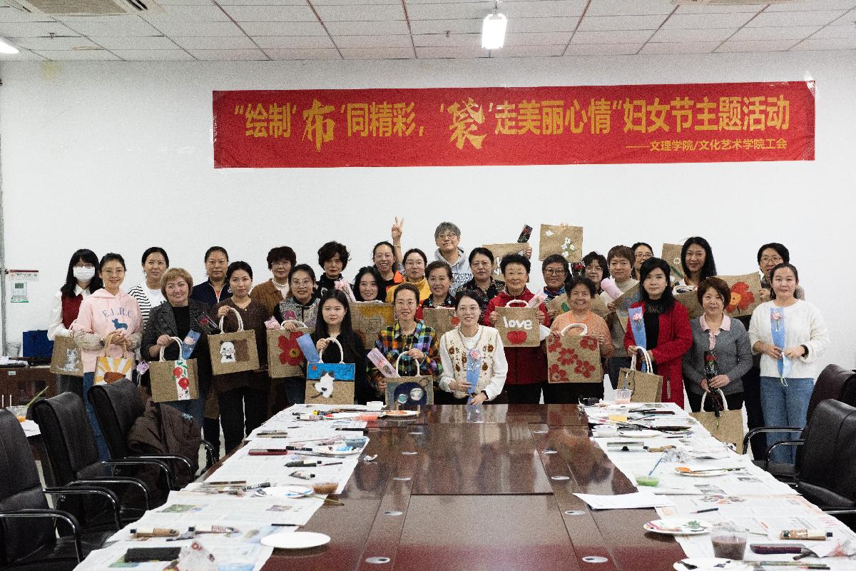 文理學(xué)院組織開展“繪制‘布’同精彩 ‘袋’走美麗心情”手繪麻布袋主題活動(dòng)。大家拿起畫筆,在布袋上繪制出各種美麗的圖案,每一筆都充滿了創(chuàng)意與巧思,每一件作品都彰顯出她們的個(gè)性與魅力。