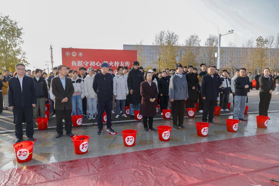 參加活動的師生及校友代表在紅山湖畔放流區域將5000余尾魚苗投進水中。一尾尾魚兒躍入水面,蕩開圈圈漣漪,不僅為這片精神地標注入了新的生機,更以“魚躍人歡”的盛景,象征著中石大精神的蓬勃生機與薪火相傳。