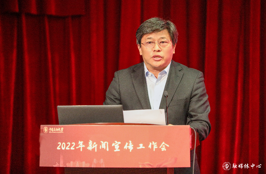 為深入貫徹落實習近平總書記關于新聞輿論工作和媒體融合發展的重要論述,進一步推動新聞宣傳工作高質量發展,4月29日下午,中國石油大學召開新聞宣傳工作會,總結近年來新聞宣傳工作取得的成績,表彰先進集體和先進個人,并對新形勢下更好地承擔新聞輿論工作使命任務,為黨的二十大勝利召開營造良好氛圍進行部署動員。黨委書記陳峰在會上強調,新聞宣傳工作大有可為,而且一定要有大作為,必須提高政治站位、突出思想引領,必須圍繞中心、服務大局,必須守正創新、加快推進媒體融合發展,必須把牢方向、守土盡責,必須建強隊伍、增強本領,進一步堅定主心骨、匯聚正能量、振奮精氣神,推動學校宣傳工作實起來、強起來,以高質量新聞宣傳工作支撐和服務學校事業高質量發展。