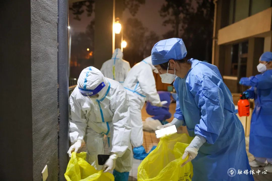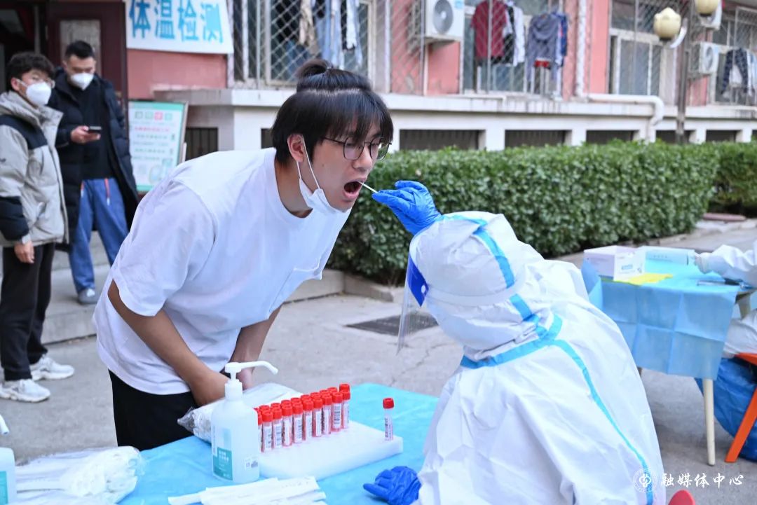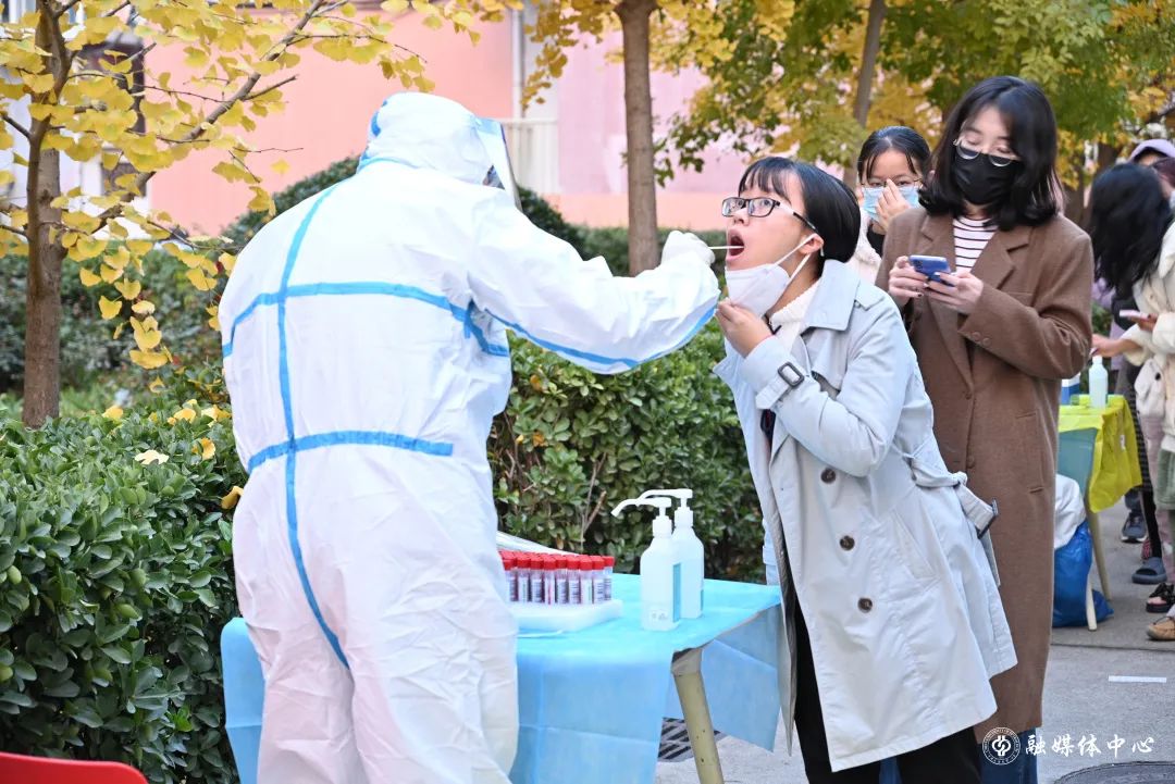 快速開展全員核酸,分片區設點檢測,封控區內上門采樣,師生依序聽從指揮,醫務人員不遑暇食。