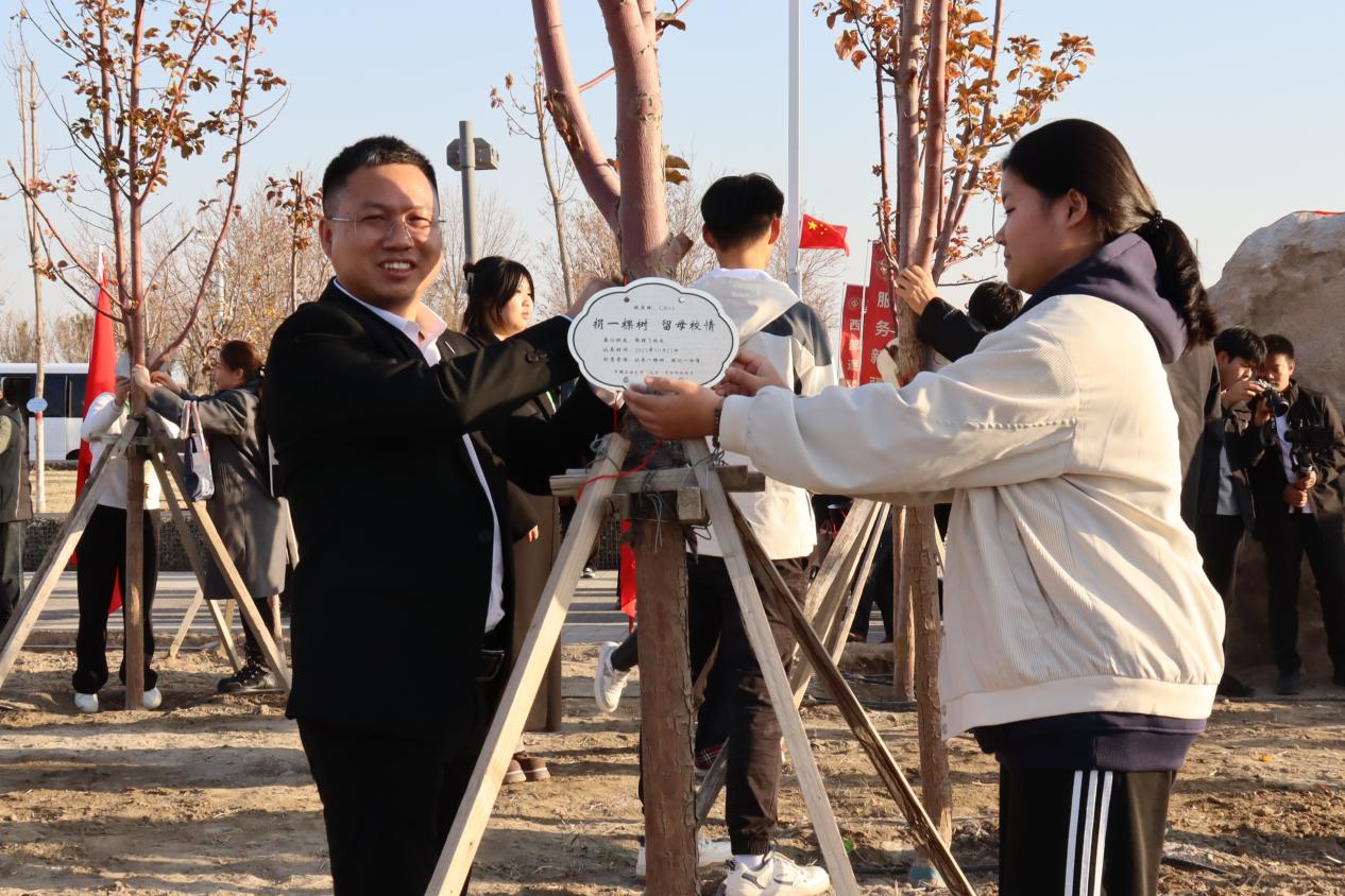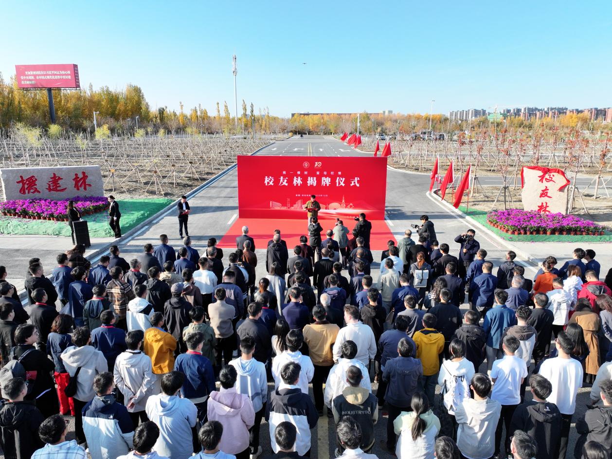 王同奇、文永紅、李軍、學校老領導和學校相關職能部門負責人、校友代表共同為校友林揭牌。