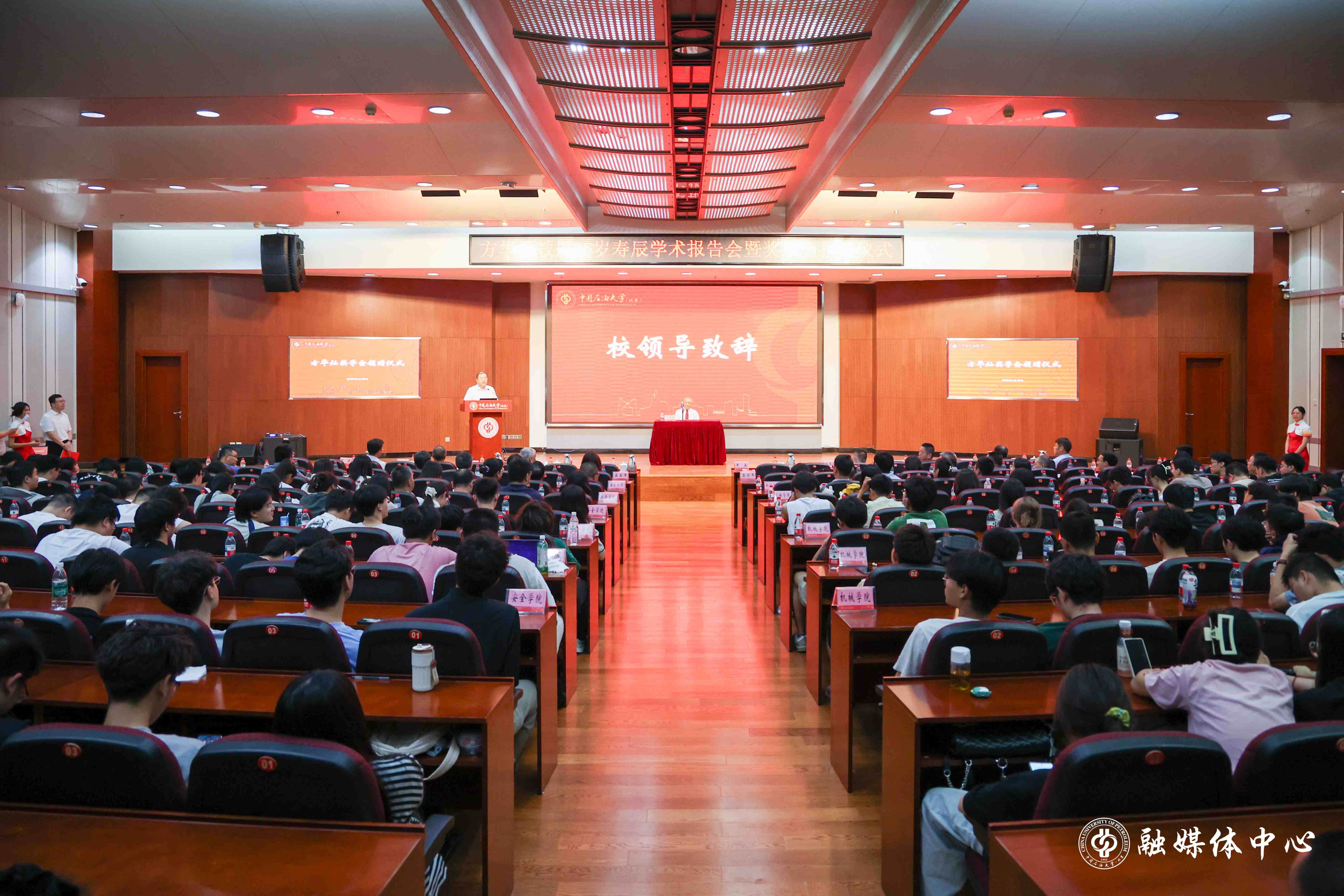 黃磊表示,方華燦先生七十三載如一日扎根教壇,這份赤誠與堅守是全體中石大人永不褪色的精神旗幟。他勉勵與會師生以先生為榜樣,將個人的理想抱負融入能源報國、能源強國的偉大洪流之中,努力成長為可堪大用、能擔重任的棟梁之材,并號召全體中石大人以先生的精神為指引,為早日把中石大建成能源領域特色鮮明的世界一流研究型大學匯聚強大動力。
