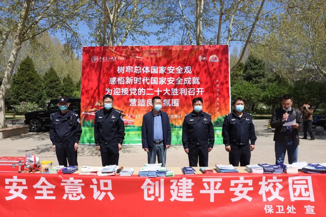 4月15日是第七個“全民國家安全教育日”。當天,中國石油大學聯合北京市公安局昌平分局開展“樹牢總體國家安全觀,感悟新時代國家安全成就,為迎接黨的二十大勝利召開營造良好氛圍”主題宣傳教育活動。