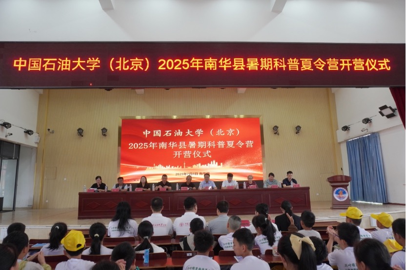 7月8日上午,2025年南華縣暑期科普夏令營開營儀式在南華縣思源實驗學校報告廳舉行。學校團委書記周學智,南華縣副縣長張舫瑞,中石大掛職南華縣副縣長張自強,中國科協相關負責人,學校科普協會、SPR機器人協會等中國科協重點支持的大學生科技社團指導老師,南華縣教體局相關負責人,思源學校、龍川小學校領導,“小小地質博物館”相關負責人、科普夏令營營員和學生家長等120余人參加開營儀式。