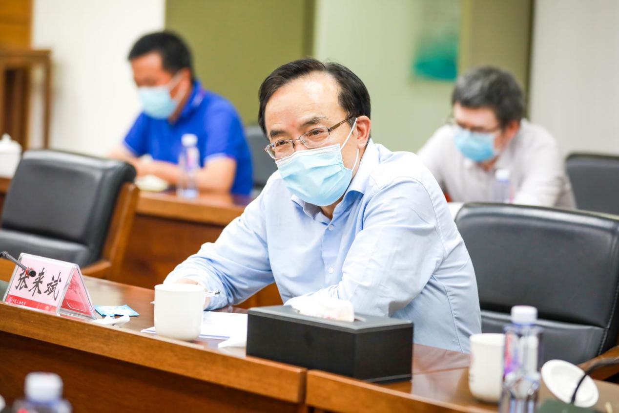 考察結束后,山紅紅主持了座談交流會。張來斌代表學校作了疫情防控及事業發展的工作情況匯報,重點介紹了學校疫情防控、教育教學和科學研究三方面的發展情況和未來設想。