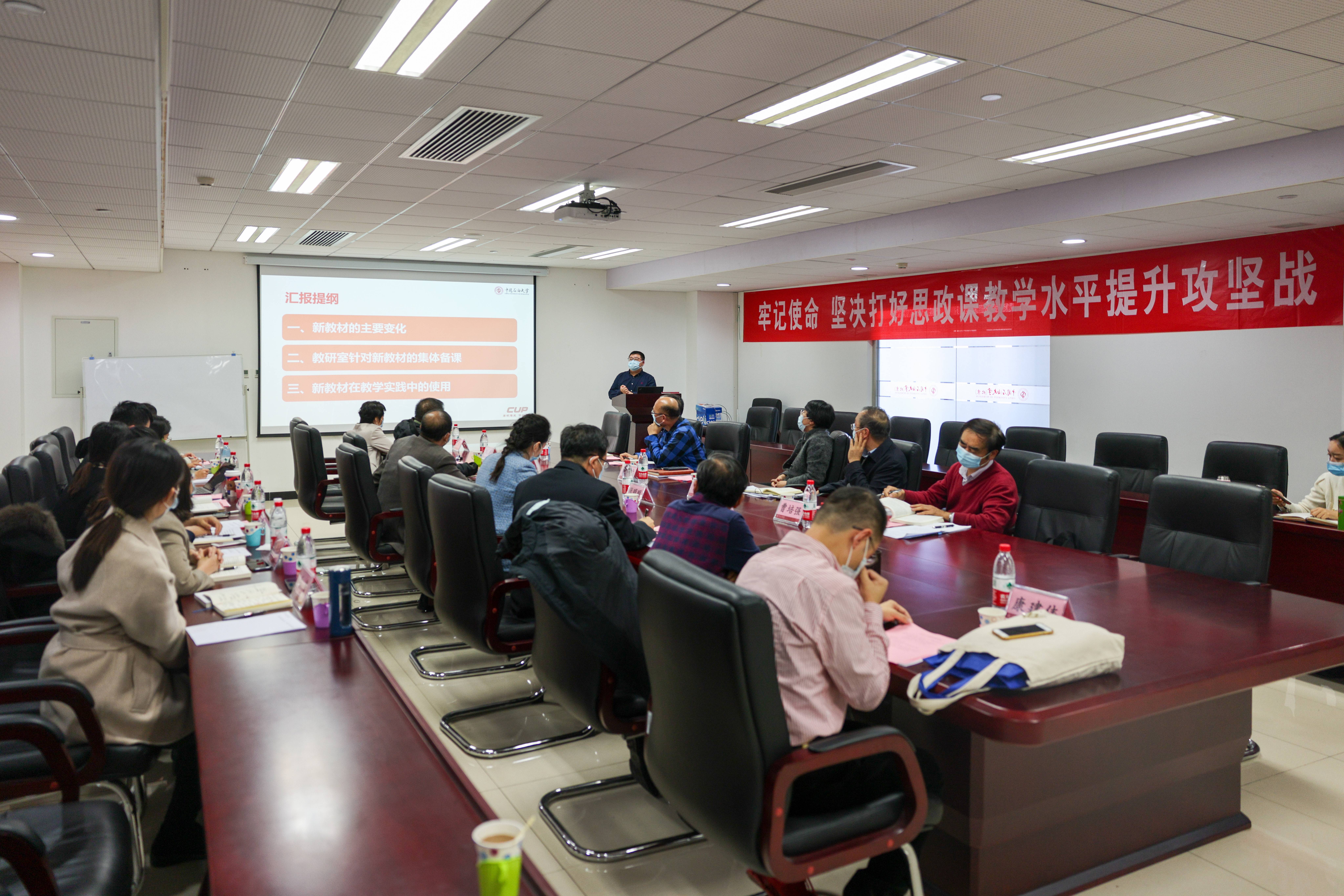 會議由馬克思主義學院院長張明明主持。馬克思主義學院科研副院長龐昌偉、教學副院長吳建偉分別就團隊建設和運行規劃等情況進行匯報,各教學團隊負責人則分別針對四門思政課“講好用好2021版新教材”進行說課。