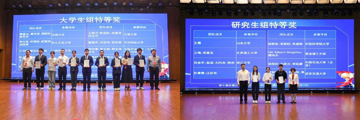 總決賽中,在中石大經濟管理學院副教授林綠與信息科學與工程學院/人工智能學院教授林伯韜指導下,信息科學與工程學院/人工智能學院鄭海妍、李起豪和經濟管理學院劉家慶的作品《天空之眼:基于遙感大數據的原油期貨價格預測》獲研究生組全國特等獎。在克拉瑪依校區工商管理學院/馬克思主義學院教授張奇、教師劉伯瑜指導下,李怡萱、李文韜、韓玉凈、申為的作品《考慮生態環境外部性影響不確定的海外鹽湖提鋰項目投資決策》獲大學生組全國特等獎,取得了新疆高校在此項大賽的最好成績。中石大師生已連續兩年獲得全國特等獎。此外,學校2個團隊獲研究生組全國一等獎,2個團隊和2名學生獲大學生組全國一等獎,6個團隊獲全國二等獎,7個團隊獲全國三等獎,1個團隊獲全國最佳泛能源大數據獎。學校多名教師獲大賽優秀指導教師獎,學校校本部及克拉瑪依校區獲優秀組織獎。