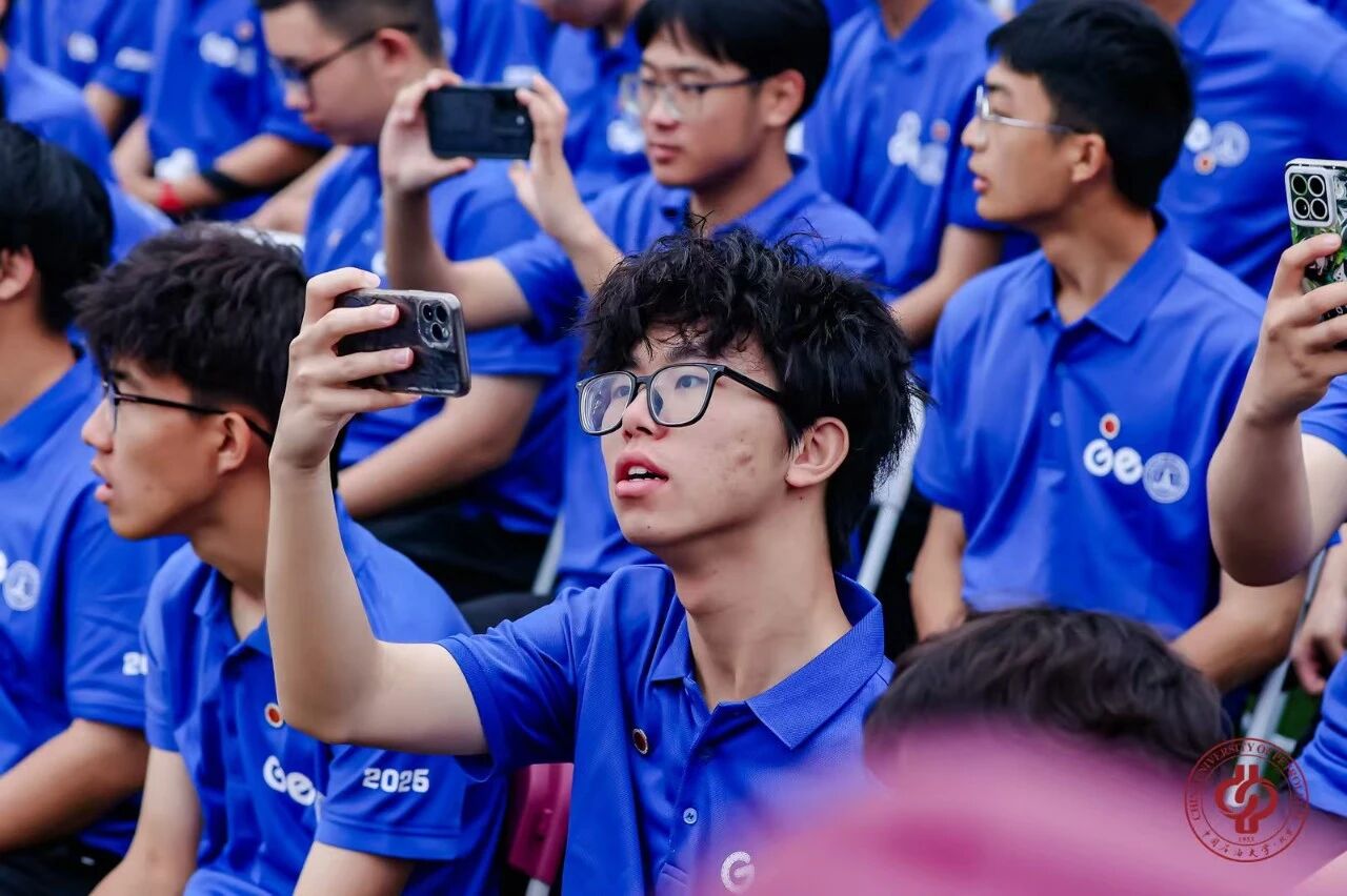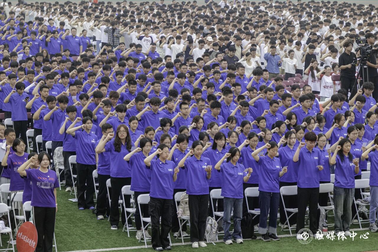 開學典禮設置了暖場表演、新生佩戴校徽、入學宣誓、向家長代表獻花、向新生班主任代表頒發聘書等環節。洋溢著青春活力的歌曲串燒點燃了全體師生的熱情與期待。適逢中國人民抗日戰爭暨世界反法西斯戰爭勝利80周年,在場師生同唱《我和我的祖國》。