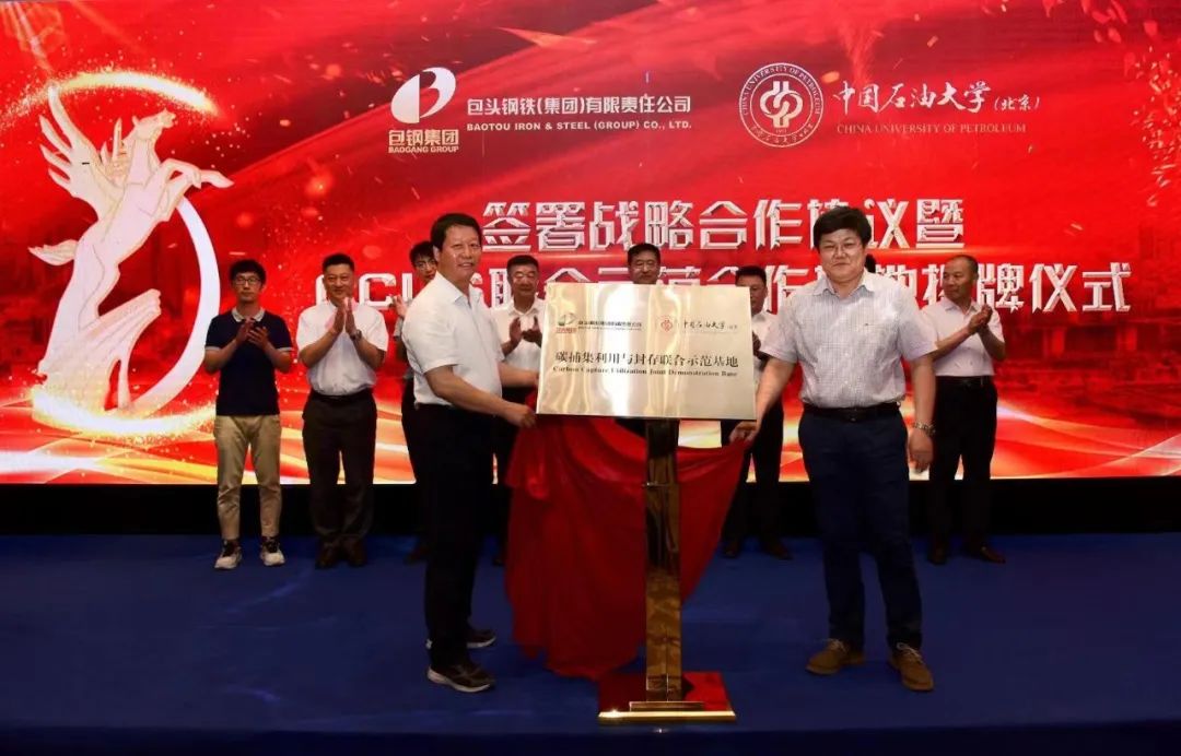 論壇上,中國石油大學(北京)與包鋼公司簽訂戰略合作協議,相關負責人為“碳捕集利用與封存聯合示范合作基地”揭牌。