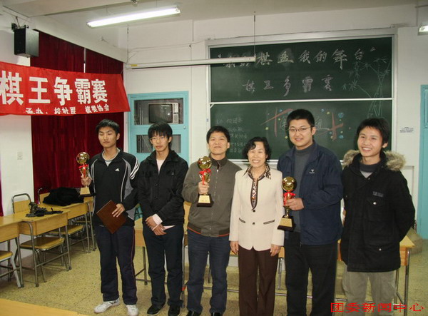 此次棋王爭霸賽分為象棋、五子棋、圍棋三個組別。最早結束的圍棋比賽采取淘汰賽制,最終何繼平奪得頭名。象棋組上午進行了兩輪淘汰賽,下午進行隨機循環積分賽;五子棋組上午進行了兩輪淘汰賽,下午進入單循環賽。經過將近六個小時的激戰,趙博,魏志鵬,董辰波分獲象棋組的一、二、三名,袁野,白思洋,張博分列五子棋組的前三名。比賽結束后,舉行了頒獎儀式。