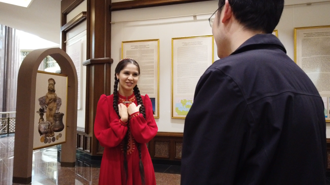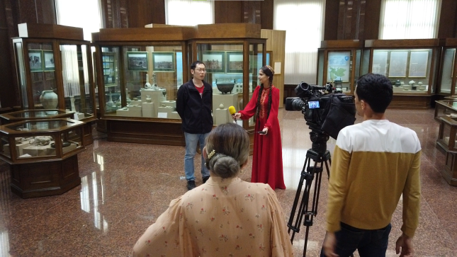 賽后,在參觀土庫曼斯坦國家自然博物館的過程中,當(dāng)?shù)孛襟w對中石大團(tuán)隊(duì)進(jìn)行了專訪。土庫曼斯坦記者穎卡興奮地跑來跟選手說:“我很了解中國!”穎卡在幾年前有過在中國留學(xué)的經(jīng)歷,她用流暢的中文與大家交流,并和大家交換了聯(lián)系方式。她說:“再次見到中國朋友,真的很開心。”