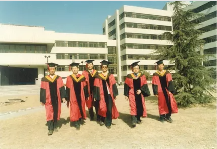 1993年,在中國石油大學即將迎來40周年校慶之際,學校電教中心的尚祥運老師給畢業留校的幾位博士拍了一組照片。6個風華正茂的年輕人,興高采烈地穿著博士學位服,在學校老科學會堂旁邊的草地上,定格下難忘的瞬間。