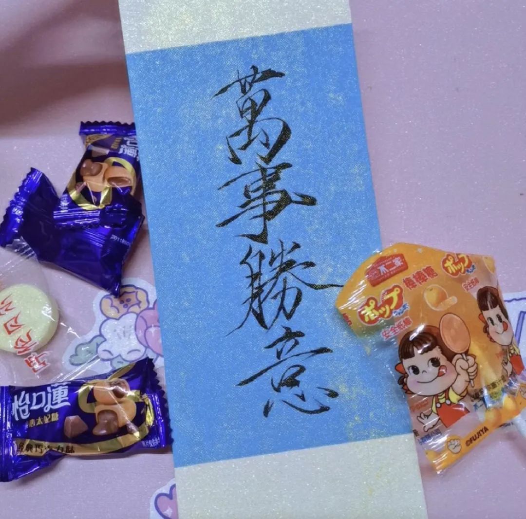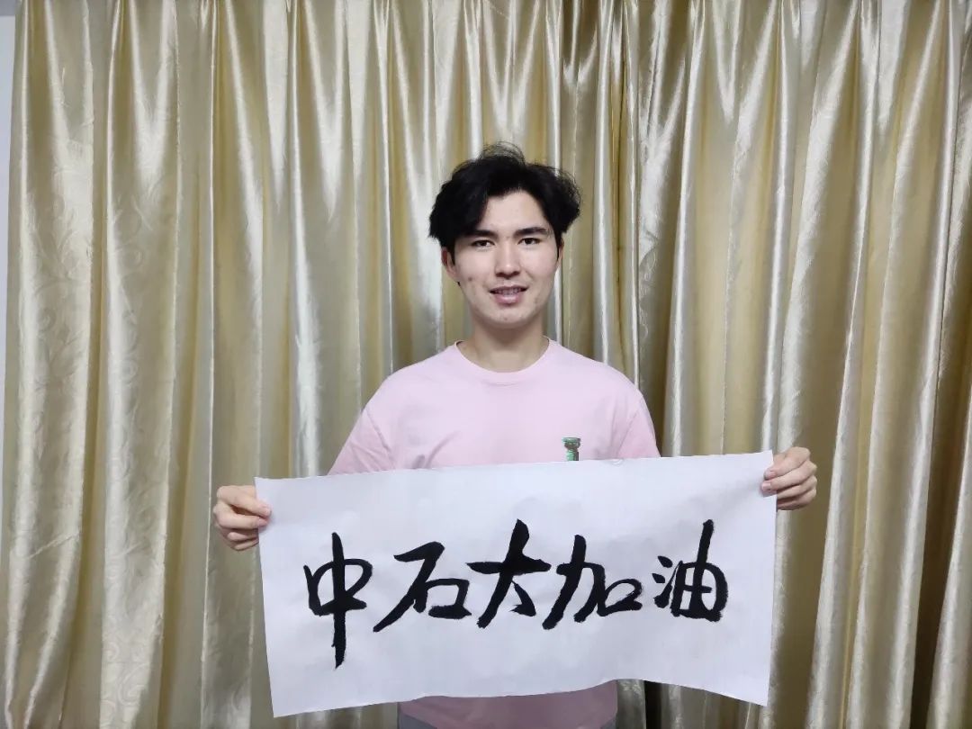拿出我最喜歡的筆墨紙硯,靜心、凝神,思考、沉淀,還有留學生們也用毛筆字為“中石大加油!”