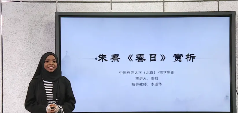 “等閑識(shí)得東風(fēng)面,萬紫千紅總是春。”在大賽中,雨擬選擇解析《春日》,希望通過闡釋朱熹筆下春景的旖旎,抒發(fā)她對(duì)中國欣欣向榮景象的感懷。決賽時(shí),雨擬結(jié)合自身經(jīng)歷,以熱情洋溢的演講《一個(gè)蘇丹女孩讀唐詩的快樂》打動(dòng)了評(píng)委。