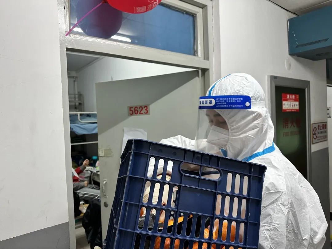由于產(chǎn)后恢復(fù)不佳,她已經(jīng)許久沒有提過重物。但是一旦投入工作,她就忘了自己特殊的身體情況,手提、肩抗,一天上下樓20多趟,一頓餐送下來,衣服都濕透了,隔離面罩上也布滿汗水呵氣凝成的水珠。為了讓學(xué)生早點吃上飯,她自己卻經(jīng)常顧不上吃飯。