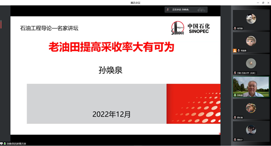 孫煥泉院士以“老油田提高采收率大有可為”為主題,針對我國復(fù)雜老油田面臨的諸多挑戰(zhàn),結(jié)合現(xiàn)場工程實(shí)踐,介紹了我國取得的理論技術(shù)創(chuàng)新與進(jìn)展,并勉勵同學(xué)們以非常規(guī)理念,利用智能化技術(shù),在油氣行業(yè)綠色低碳發(fā)展道路上大有可為。