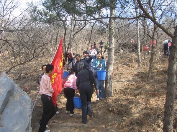 植樹之后,為了增強強教師們強身健體的意識,分黨委還組織了分小組比賽形式的登山活動。