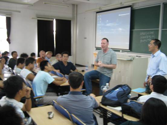 在各專業舉辦的座談會中,我校品牌專業之一的市場營銷專業座談會尤為引人注意。除本專業的各位教師到場外,來自瑞典Uppsala大學的四位博士生以及Liverpool大學Simon P Snowden老師也應邀參加了座談。會上,Simon P Snowden老師為同學們講解了工商管理在英國的地位與相關的研究,并與同學們進行了多方位的交流,收到了良好的效果。