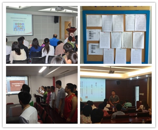 各學院積極將誠信教育滲透到畢業離校服務的各個環節中,深化學生誠信觀念,上好學生踏入社會的最后一課。其中,石油工程學院組織貸款畢業生座談會,就誠信還款、誠信就業、誠信做人展開熱烈討論。地球科學學院組織開展了以“我誠信、我承諾”為主題的心得分享和公開承諾活動,宣傳誠信典型事跡。機械與儲運工程學院舉辦誠信教育專題講座,并組織貸款畢業生進行誠信宣誓,引導學生按時還款、誠信做人。理學院組織畢業班輔導員與貸款畢業生進行“一對一誠信談話”,并面向貸款畢業生征集誠信格言,強化貸款畢業生的誠信還貸意識。