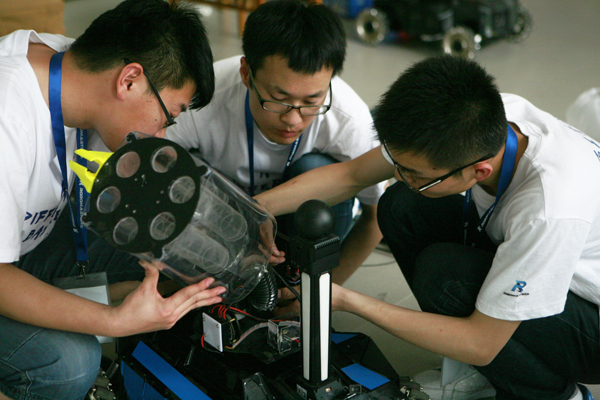 5月30日至31日,RoboMasters2015全國大學生機器人大賽(華北賽區)將在中國石油大學(北京)體育館舉行。來自清華大學、北京大學、天津大學、北京科技大學、華北電力大學、中國石油大學(北京)、中國石油大學(華東)等華北地區20多所高校的24支隊伍已齊聚石大,厲兵秣馬,正為角逐華北賽區冠軍及全國總決賽參賽名額做最后的精心準備。