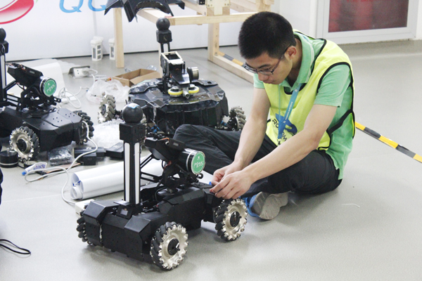5月30日,RoboMasters2015全國大學生機器人大賽(華北賽區)在中國石油大學(北京)體育館開賽。來自華北地區20多所高校的24支隊伍分成8個小組展開了激烈的小組對抗賽,最終中國石油大學(北京)SPR機器人隊、清華大學危機四伏隊、太原工業學院火線隊TITF、河北工程大學UPRE機器人隊、中國地質大學(北京)勇翼隊、北方工業大學NCUTDreamteam、山東科技大學Smart Robot隊、天津大學RM戰隊晉級8強,進入明天的淘汰賽,角逐華北賽區總冠軍及全國總決賽名額。