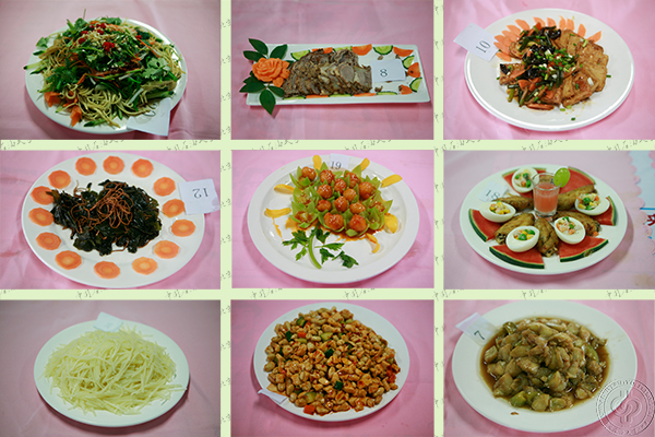 今年的廚藝比賽分為廚師專業(yè)組與教工業(yè)余組。專業(yè)組共有10名參賽選手,由餐飲服務(wù)公司下屬各餐廳選派廚師現(xiàn)場(chǎng)在規(guī)定時(shí)間內(nèi)制作指定菜品和創(chuàng)新菜品;業(yè)余組共有25位參賽選手,由教職工自備原材料制成成品,在比賽現(xiàn)場(chǎng)展示。