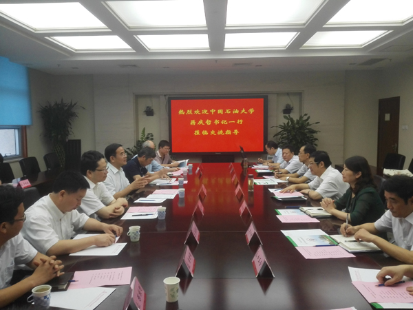 蔣慶哲一行分別與克拉瑪依市委書記、新疆油田黨委書記陳新發,克拉瑪依市市長張紅彥等克拉瑪依市領導和新疆油田領導,中原石油勘探局局長、中原油田分公司總經理孔凡群,中國石化華北石油局黨委書記、副局長王程忠,中國石油河南銷售分公司黨委書記張海云,中國石化四川維尼綸廠黨委書記徐正寧,中國石化集團高級專家、江漢油田副總工程師兼涪陵頁巖氣公司常務副經理習傳學等企業領導進行了座談交流。
