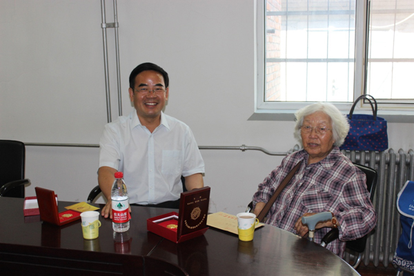 在紀念抗戰勝利暨世界反法西斯戰爭勝利70周年到來之際,石大黨委書記蔣慶哲走訪慰問了抗戰時期參加革命工作的離休干部王秀珍,并送去慰問金。