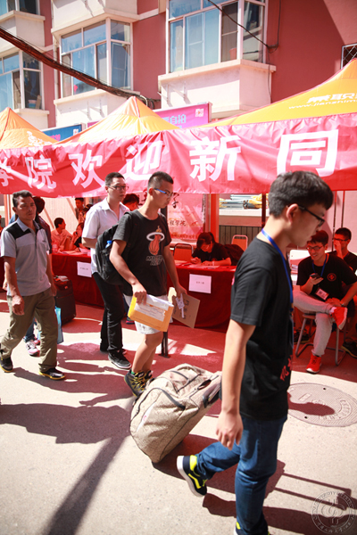 為迎接新生的到來,學校在火車站、北校區、潤杰學生公寓、陽光學生公寓、匯才學生公寓等地設立了新生接待點,從早上7點開始,各部門、各學院、各社團的工作人員和志愿者們就開始忙碌起來,以飽滿的熱情和良好的精神風貌為新生和家長提供細致的服務。