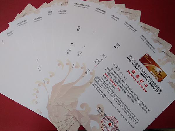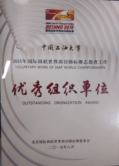 石大志愿者獲2015田徑世錦賽組委會表彰