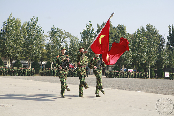 結(jié)訓(xùn)典禮在激昂的義勇軍進(jìn)行曲中開始,隨后進(jìn)行了分列式閱兵匯演,1900余名學(xué)生,18支方隊(duì)以嘹亮的口號(hào)、剛毅的軍姿和整齊的步伐走過了主席臺(tái),展現(xiàn)了2015級(jí)新生的精神風(fēng)貌。在軍訓(xùn)成果匯報(bào)表演中,參訓(xùn)學(xué)生進(jìn)行了軍體拳、匕首操、三聲三相和“三防”戰(zhàn)術(shù)演練等訓(xùn)練內(nèi)容。