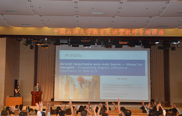培訓會邀請了美國北卡州科學和數學學校校長托德•羅伯茨 (Todd Roberts)博士來校講座。講座中,托德•羅伯茨對美國中小學教育的師資力量、教師選拔與晉升、課程設置、課堂教學、學校管理等方面做了總體介紹,分析了美國中小學教育的優勢與特點、存在的問題與癥結,并分析了中美中小學教育之間的差異。