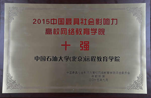 石大遠程教育學院榮獲“2015中國最具影響力高校網(wǎng)絡教育學院”稱號