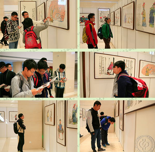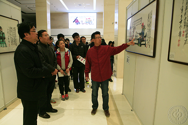 黨委書記蔣慶哲、黨委副書記剛文哲與相關職能部門負責人及60多名師生代表參觀了展覽。畫家仇立權先生對作品內容和創作思想等進行了講解。