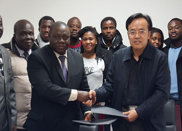 11月18日,加納Takoradi Polytechnic大學校長Emmanuel Andoh一行三人來石大交流訪問,中國石油大學校長張來斌會見了客人,國際合作與交流處負責人參加了會見。張來斌和Emmanuel Andoh分別代表雙方簽訂了合作協議。