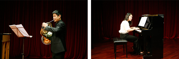 1月7日晚,由中國石油大學黨委宣傳部、校工會和地球科學學院聯(lián)合主辦的“迎新年‘圓號與鋼琴’音樂會”在校園藝術(shù)中心舉行。來自天津音樂學院的青年圓號教師黃濤與青年鋼琴演奏家童心聯(lián)袂為近200名師生帶來了一場別具一格的古典音樂盛宴。