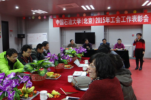 為表彰先進,推動工會工作再上新臺階,1月13日,石大在職工活動中心召開2015年度工會工作表彰會。會議表彰了2015年度先進部門工會、獲特色活動獎的部門工會、優秀協會及工會優秀干部、工會積極分子。黨委副書記、工會主席剛文哲,校工會相關負責人及各部門工會90余名工會委員參加了會議。